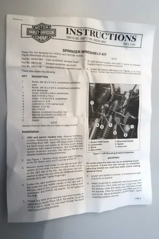 Dieser Satz wird benötigt, um ein das Windshield 58015-95, 58017-95 oder 58044-88A an die Softail Springer zu montieren.